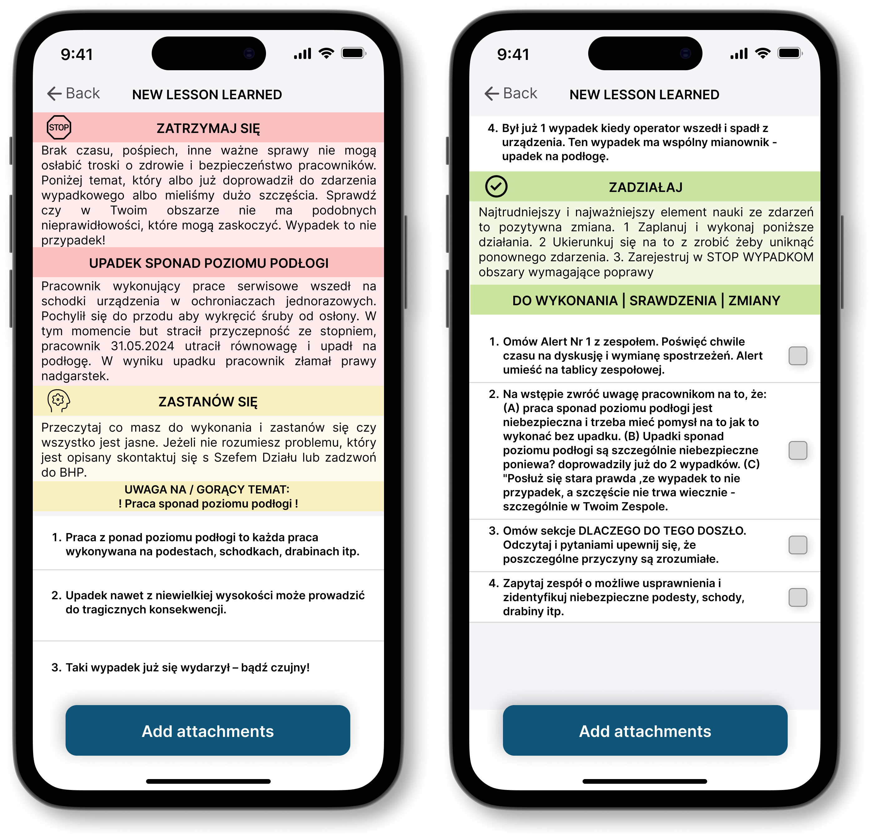 obserwacji związanych z bezpieczeństwem pracy i jakością za pomocą aplikacji mobilnej.
